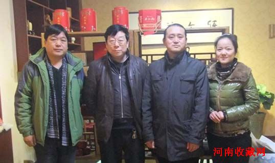 史雅文与“麦秆王”王华平(右二)、河南收藏网张祥龙(左二)合影