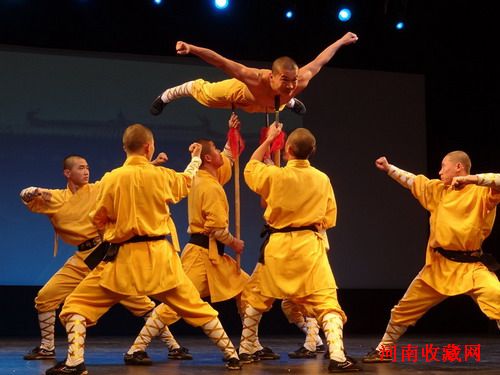 河南嵩山少林武术团表演“银枪刺喉”