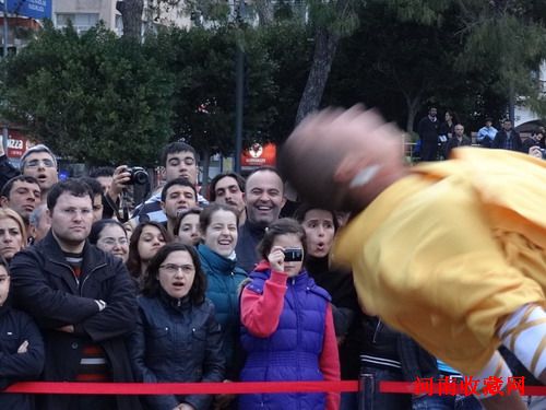河南嵩山少林武术团应邀访问土耳其,在安塔利亚市艺术中心和共和国广场进行了两场精彩演出。图为市民和游客们早早来到安塔利亚共和国广场,等待演出的开始。