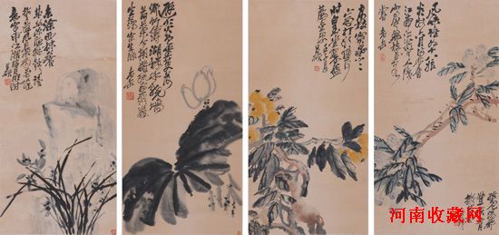 吴昌硕-时珍四屏