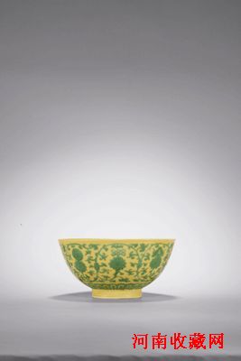 清雍正-黄地绿彩莲托八宝纹碗