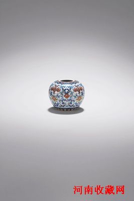 此外,备受瞩目的御用器清乾隆<斗彩缠枝蝠纹洗>,为皇帝文房佳器,假若配以玉笔、《石渠宝笈》其皇家韵味犹存。洗口微敛,丰肩,圆形腹至圈足处渐收敛,下有内凹圈足。口沿处绘斗彩如意云纹,通体饰以折枝宝相花,足外墙绘莲瓣纹一周。底书“大清乾隆年制”六字双行篆书款识。整器填色准确。釉色洁白滋润,色彩亮丽。