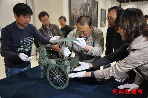“马踏飞燕”1969年在甘肃武威雷台汉墓中出土,该墓是东汉时期镇守张掖的军事长官张某及其妻的合葬墓。甘肃省博物馆的刘光煜介绍说,该墓出土了一组庞大的铜车马仪仗俑群,由38匹铜马、1头铜牛、14辆铜车(13辆马车,1辆牛车)、17件手持矛戟的武士俑和28件奴婢俑组成,是迄今发现数量最多的东汉铜车马仪仗俑。这次来河南展出的除了铜轺车外,还有威武的执戟铜骑士、执矛铜骑士,都是墓中的精品,曾在很多国家展出过。