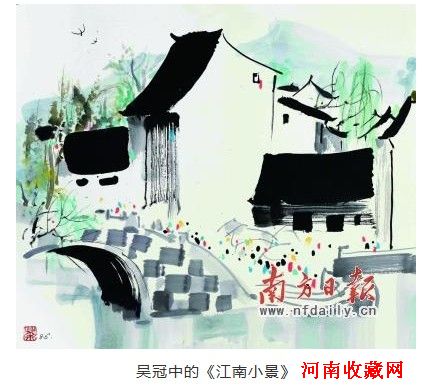 吴冠中的这幅《江南小景》篇幅不大,寥寥几笔便勾勒出江南农村的新貌。此次春拍还有一件由赵少昂、杨善深、何漆园、叶少秉等43位客居香港的岭南画家联合创作的《五色相宜》手卷。据工作人员介绍,此手卷长达9.1米,是目前国内最长的手卷,相传是画家们为了庆祝新中国成立而作的“百花图”。