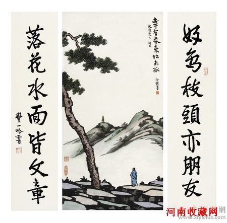 丰子恺(1898-1975) 幸有我来松未孤 丰一吟(b.1929) 行书 七言联