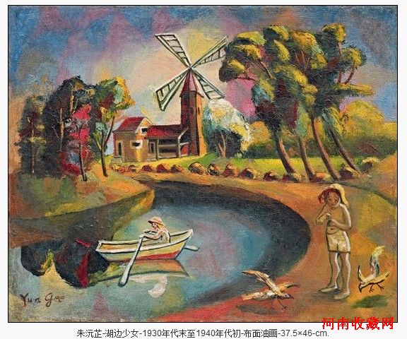 朱沅芷在1930年代末至1940年代初创作的《湖边少女》,是少见的这一时期具有抒情意味的暖色调作品,霓虹般的天空有早年共色主义的画风,而人物及场景丰富的细节、自然主义再略加变形的处理手法,完全体现了画家强烈而成熟的个人风格。