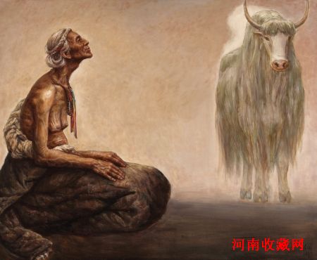 体黝黑的百岁老人与雪白的西藏牦牛形成强烈的反差,给人以极大震撼,该作品估价为550万元至600万元。