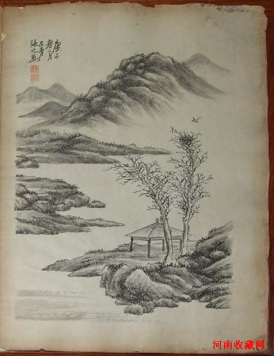 张之万(1811—1897)清代官吏,张之洞兄。字子青,号銮坡,直隶南皮(今属河北)人。道光二十七年(1847年)状元。同治间署河南巡抚,移督漕运,历江苏巡抚、闽浙总督,光绪中官至东阁大学士。画承家学,山水用笔绵邀,骨秀神清,为士大夫画中逸品。初与戴熙讨论六法,交最相契,时称南戴北张。书精小楷,唐法晋韵,兼擅其胜。有张文达公遗集。
