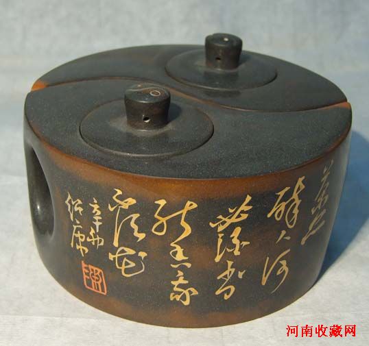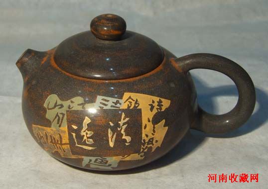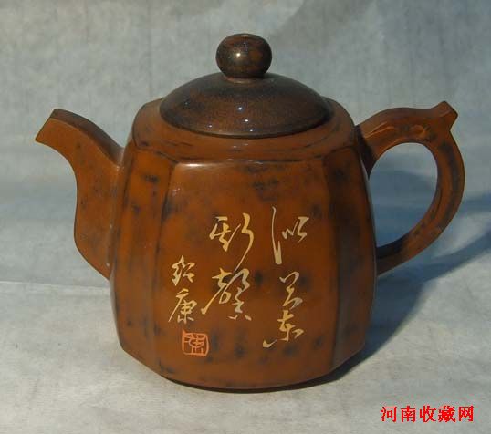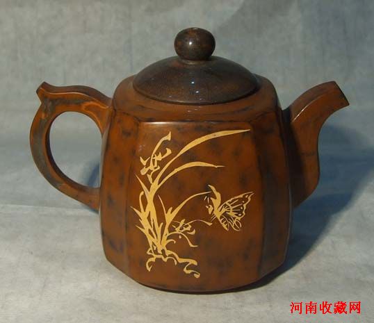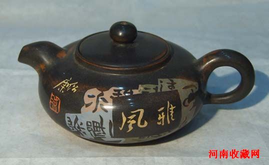 在云鹏弟的“茗翠轩”看到紫陶大师陈绍康的紫陶作品,感到一把把精美的壶,很难想到是陶、是泥,而是美幻绝伦的“彩玉”雕砌而成。全国的各色瓷质、陶质器皿见的不少,唯独紫陶孤陋寡闻,现介绍如下,以给热爱艺术、热爱收藏的朋友,再填新品种......