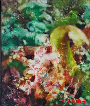 创作于1994年的《海螺沟植物2号》,描绘的是四川海螺沟内瑰丽的自然景色,作者熟悉并热爱这里的一草一木,但他并没有用传统风景画的方式去表现,而是采用了一种实验性的画法:将一种粗略的、凝练的直观感受表达出来,产生了近乎失焦和颤抖画面效果。作品的内容虽然是花草写生,但观众很难在画面上看到具体的形象,完全是瞬间感受的捕捉。画布上的色调极其缤纷绚丽,仿佛是行经山间匆匆一瞥,繁花在阳光照耀下形成的晃动光斑。鲜腻油彩的自由笔触和酣畅涂抹也给人强烈的视觉感受,不由自主地被艺术家创作的兴奋带动,这种艺术体验足够原始,有种大快朵颐般的快感。