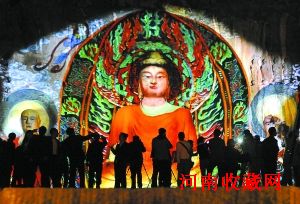 图为洛阳龙门石窟景区新推出的“夜游龙门”项目吸引了大批游客。