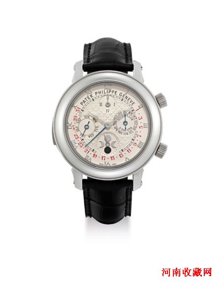此外,值得留意的还有世上首枚量产的粉红金万年历腕表1526型号。纵然该腕表具有重要的历史地位,兼备美不胜收的设计,却往往得不到应有的重视。腕表由一位重要的收藏家委托出拍,之前未曾于市场上出现,堪称其中一枚最具吸引力的1526型号作品。1526型号的粉红金版本十分鲜见,目前为止,只有30枚曾在拍卖场上亮相,这是其中一枚。腕表于1941年面世,深受收藏家喜爱,其别树一帜的Calatrava表壳,更是最易于辨识的设计。另一枚精钢1526型号,现存于日内瓦的百达翡丽腕表博物馆。