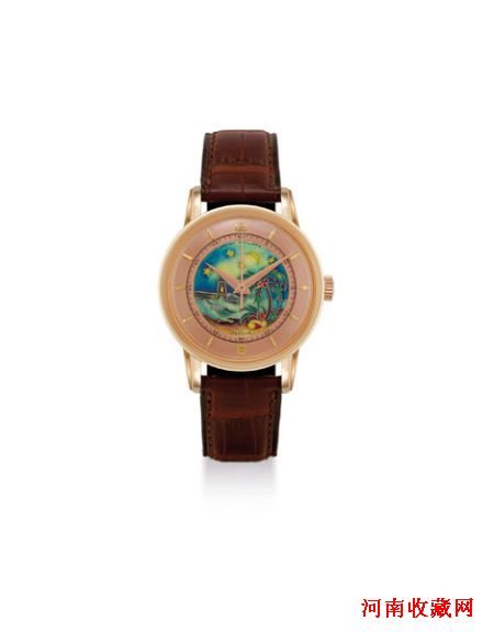 在百达翡丽众多历史性作品之中,配备中置秒针及掐丝珐琅表盘的粉红金The Lighthouse 2481型号,就被公认为历来其中一枚最大的腕表。腕表于1950年面世,其掐丝珐琅表盘的设计,便引证了品牌在美学、工艺和稀有性的领导地位。在上世纪40至50年代,百达翡丽只曾生产为数极少的简约时分显示腕表,而当中加设美仑美奂、构图细致的掐丝珐琅表盘的作品更是寥寥无几,一般都是描划地图或森林,又或类似此拍品的灯塔图案。像此枚拍品般状态良好,没有任何瑕疵或损毁,便真正称得上收藏家的不二之选。