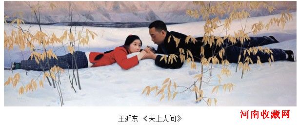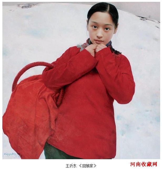 王沂东是当今中国最具实力的油画艺术家之一。他对古典主义大师的表现技法兼收并蓄,融汇中国传统文化的艺术语言,将油画创作的基本技巧与作品的情致结合起来。此次嘉德春拍将推出王沂东两件力作《天上人间》和《回娘家》。《回娘家》是极具其个人风格的一幅杰作,大红棉衣的女子在雪景的映衬下,分外娇柔俏丽。《天上人间》中,一对恋人趴在辽阔的雪地里、双手紧握。静默的黑、雪地的白、民间的大红与一点点枯草黄,不仅极富中国乡村的味道,也构成了艺术上的纯净,给作品蒙上一层苦涩的味道。