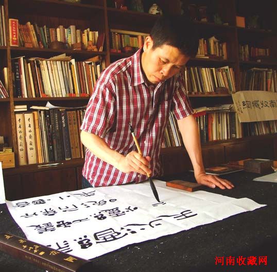 王军杰在创作书法