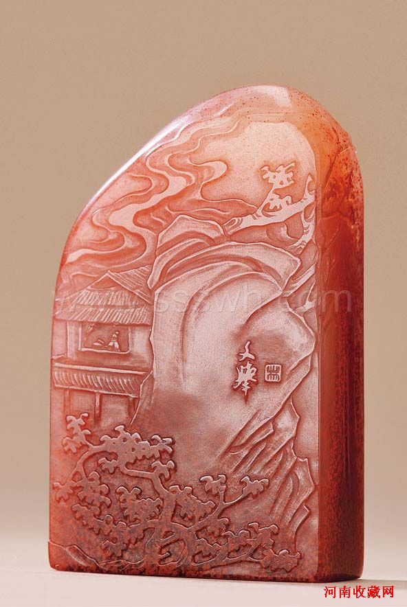 林文举作高山桃花洞石《万山秋叶》薄意扁章 规格:5.6×3.4×1.4cm