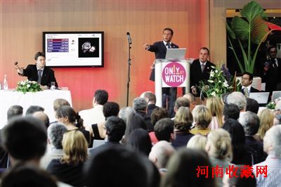 拍卖会上,一款具有皇室风格三锤三问的珐琅怀表成为全场的焦点。这枚怀表从150000瑞士法郎起拍,没有网络的竞投者,所有的竞争只是在现场与电话之间。也许是因为欧债危机等经济原因,大约竞投至250000瑞郎的价格时就只剩下亚洲的竞投者了。又经过4轮叫价至500000瑞郎,之后的出价,两位客人多了很多耐心,开始以1万瑞郎的小幅递增叫价。通常一枚表的拍卖时间约为1分钟至2分钟,而这枚腕表经过了将近15分钟的激烈竞争,最终以600000瑞郎落槌,现场所有的客人都为这位客人最终的胜利而鼓掌。