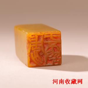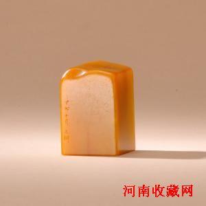 清 又栩款田黄石素章 H:4.7cm, 110g
