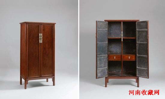 其封面藏品“明末清初黄花梨圆角柜”以966万位列首位。此圆角柜,造型高大,线条俊美。攒框装木轴门,中间安闩杆,两扇门板为花纹对称,门下未设闷橱。相同种类的明式家具有各种不同的造型与结构,以此柜来说,同一款式未设闷橱的与设闷仓的比较起来就显得更为简洁,这类柜子可存放书籍,为书房家具。