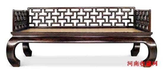 此外“清早期 紫檀三屏风攒接围子罗汉床”,与上海博物馆王世襄先生旧藏的一张紫檀罗汉床非常类似。此罗汉床以名贵紫檀木制,尺寸硕大,用料厚重,制作繁复。床面较一般罗汉床宽大,乘坐舒适。三面床围子,攒接曲尺式棂格,空灵秀丽,观赏性极高。牙板与床腿圆角相接,大料整挖的内翻马蹄足,兜转有力,弧度夸张,线条流畅,给人以敦实牢固之感。此床造型上未有过多修饰,承袭明式家俱的隽秀之风,体现出其独特之处,可谓承上启下,具有极高的收藏与研究价值。最终以2070万元人民币易主。