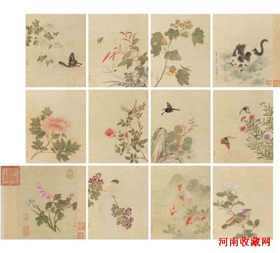 蒋廷锡是学问渊博的文人,又是清代康熙、雍正朝位高权显的重臣和清代中期最重要的宫廷画家之一。擅画花鸟,画风有二种,一为水墨小写,潇脱苍厚,兼陈道复、恽南田二家之长;一为设色写生,艳丽生动,开邹一桂等法门。前者表达了他志趣雅洁的文人情怀,后者象征了他华贵富足的官宦气象。蒋廷锡《仿宋人勾染图》册写墨花十二种,精雅严谨,兼陈道復之苍郁与恽南田之秀丽,确是蒋廷锡的本色。另一册蒋廷锡《仿宋人设色图》册,亦十二开,写种种花卉禽鱼,加以极为精细的草虫,艳冶秀媚,活色生香。二册分别著录于《石渠宝笈》初编,应该是同时命意构思,精心绘制而成套进呈皇帝的作品。从其上藏印看,它先由康、雍、乾、嘉诸帝收藏,后在道光或咸丰时赏赐出宫,由于二册都有亲王载铨“行有恒堂”的藏印,估计是直接赐给载铨收藏保存的。载铨之后,他们转入晚清大臣及富商吴普心之手,近代则成海外一位著名藏家的长物,秘不示人数十年。因收藏得所,故保存完美。最终,蒋廷锡《仿宋人勾染图》册以2185万元成交,蒋廷锡《仿宋人设色图》册以2530万元成交。
