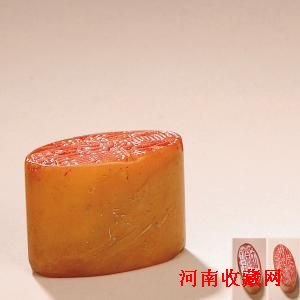 清 田黄石双面印椭圆章 H:2.4cm,27.6g