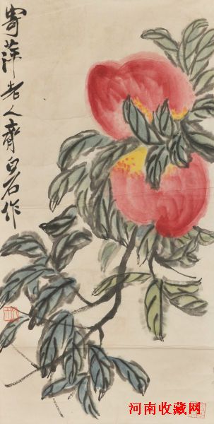 齐白石 双寿图 设色纸本 镜心 68×33.8cm