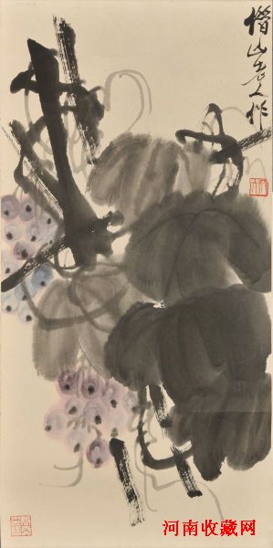 齐白石 墨叶紫葡 设色纸本 镜心 68.5×33.7