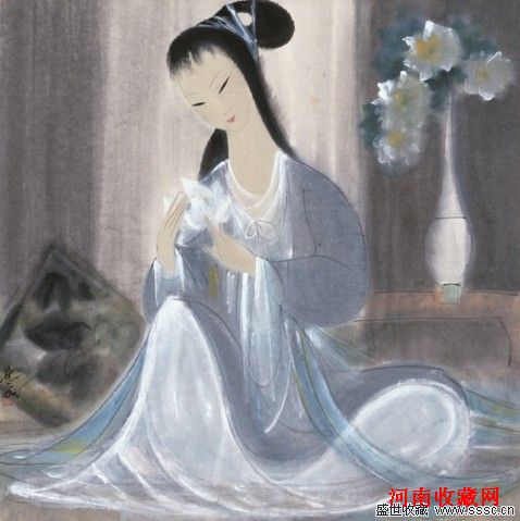 林风眠 《仕女赏花图》 彩墨 纸本 69×68cm 1960年代