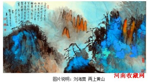 在中国现代画家中,刘海栗走的是一条中西融合的艺术路子。他受石涛、八大山人画风影响颇深,具有深厚的中国传统笔墨功力。他系统学习和研究了西方从文艺复兴到现代的绘画艺术,对莫奈、梵高等人的体会与心得尤深。他长期致力于将中国传统笔墨技艺与西方现代光色技法融会贯通,努力探索一种具有时代气息的新绘画语言。本次春拍,所汇集的数幅刘海粟的作品,如《偕隐名山》、《黄山横翠》、《劲松图》、《富贵寿考》、《松寿图》、《十里荷香》等,创作时间跨度数十年,基本上反映了他艺术风格的嬗变之迹。
