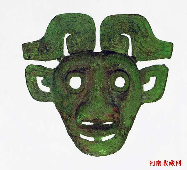 商周时期墓葬中,多发现有青铜人面饰与青铜兽面饰。且出土此类青铜面饰的墓葬多为高等级墓葬,而出人面饰墓葬规格又似高于出青铜兽面饰者。据学者考证,这些青铜面饰有的用于盾牌饰,有的用于马冠饰或其他车马饰,还有的用于祭祀。我们考察先秦至汉代神话传说中诸神多具备人面兽身或者兽面人身的特点,尤其汉代画像石中所见神话人物多做人面龙身形,似可确认该类青铜面饰为神面。又《山海经·海外北经》:“北方禺强,人面鸟身,珥两青蛇,践两青蛇。”禺强为北方水神。《山海经·海外南经》:“南方祝融,兽身人面,乘两龙。”祝融为炎帝之后,是楚人的远祖,从部落首领而升格为神。这些神秘古怪的神面形象,似可从古籍的记载中得到一点线索。