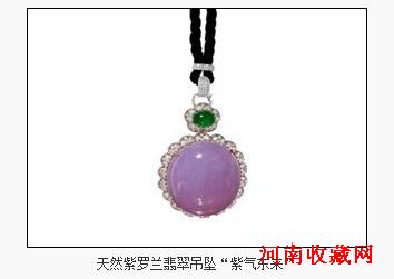这颗来自缅甸的天然紫罗兰翡翠吊坠“紫气东来”以其梦幻般的色彩令人目不转睛。它的总重量为58.44g,估价:650万-850万。