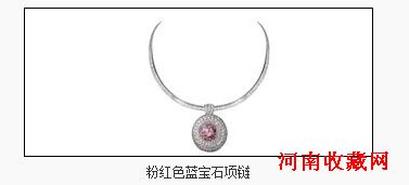 另一款粉红色蓝宝石项链是由白色18K金镶嵌的,主石为蓝宝石,配石为钻石。彩色蓝宝石以其晶莹剔透丰富多彩的颜色,被古代人们蒙上了神秘的超自然色彩,被视为吉祥之物。作为彩色蓝宝石中的一员,这颗粉红的蓝宝石,被施以精准的切工、完美的打磨,最后呈现出耀眼的火彩,足以打动每一个看到她的人!(估价:500万-800万)