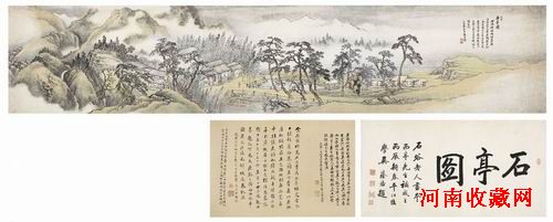 設色紙本 手卷 1717年作 引首:37.5×72cm 畫心:37×185.5cm 題跋:37.5×60cm