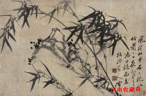 “吳門畫派”以“明四家”最為聞名,畫學承自沈周的文徵明,又是其中最具代表性的。無論是書法還是繪畫的成就而言,他都堪稱一代巨匠。如果說文徵明的青綠山水以濃鬱的書卷氣息和士人情趣取勝,創建出了超越宋元理法的風格典範;那麼其清雅韻致的筆墨在表現文人式的水墨山水時,則更加遊刃有餘。文徵明的水墨紙本立軸《寒林竹石圖》,繪前景古木竹石,中景荒臺野亭,遠景空山輕嵐。其蕭簡疏淡的畫風與“一河兩岸式”的構圖承襲倪瓚,但整幅畫並不旨在凸顯倪瓚式的幽遠。背景的疏簡反倒突出了近景中古木竹石、細葉遒幹的疏密有致,筆墨的精銳秀雅,墨色的清淡而變化豐富;更有一株橫枝斜插而出,野藤如蛟龍纏繞,蔓須低垂其下。這樣的意態橫生、天趣盎然,顯然非倪瓚的蕭疏意境所有,而是出自藝術家自身悠然平和的閒居生活。右上空白之處的題跋,以一首其早年所作的五言絕句:“北風入空山,古木翠蛟舞。何處鳴琅玕,石泉灑飛雨”抒寫出畫中所現的此情此景,並明白道出該畫是他在明嘉靖二十年(1541)的七月十五日,七十二歲時于弟子王祿之“堅白齋”(王穀祥齋名)茶敘後所作。此畫問世近五百年來,歷經明萬曆年間杭州文官沈朝煥、清嘉慶道光年間重要收藏家高象南、民末清初大收藏家郭葆昌,以及現代著名考古學家、歷史學家鄭德坤等遞藏,極為難得。而且,在鄭德坤先生收藏期間,伴隨著他的學術研究,《寒林竹石圖》還於1967年參加了法國巴黎賽努奇博物館所舉辦 的“木扉收藏明清中國書畫展”,並被收錄於1976 年在香港中文大學出版的畫冊《木扉藏明遺民畫二十家》。以後,更是被今人多次出版著錄,從而靡聲海內外。