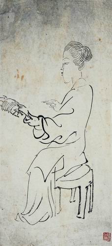 任伯年(1840~1895) 紡線圖畫稿