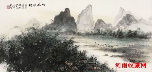 黎雄才(1910~2001) 竹林漁村圖 設色紙本 鏡片 1960年作 69×138.5cm