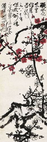 關山月(1912~2000) 紅白梅花圖 設色紙本 立軸 1981年作 79.5×27.5cm