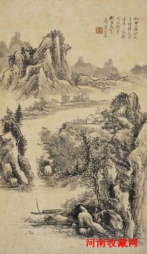 陸儼少山水畫風可以分早、晚兩個時期,如陸儼少在《自敘》中所說:“在六十年代以前,我的畫風較為縝密、靈氣外露;七十年代以後,日趨渾厚老辣,風格一變。”《秋水漁舟圖》作於1960年,具有其早期畫風中的縝密娟秀。圖中豐富多變的墨與色,似春意盎然,勃勃有生機;柔雋長線,筆筆飄動而又沉穩;空曠明淨,抒情靈動,既顯示出其嫺熟而靈變的師古功底,又體現了其參酌寫生而產生的新畫法。