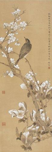 謝稚柳在花鳥畫中的復古並非是孤獨的。被譽為“南陳北于”的陳之佛和于非闇同有此好,更被視為繼宋元以後推動中國工筆花鳥畫發展的奠基人。1934年,陳之佛第一次用“雪翁”這個名字,以工筆花鳥畫參加中國美術協會第一屆展覽,其清雅婉麗的傳統畫風,立刻引起了當時畫壇的關注。陳之佛的工筆花鳥畫在繼承宋元傳統繪畫的基礎上同時吸取異國的藝術特長和圖案裝飾色彩的特點,創造出清新、冷逸、典雅的工筆花鳥畫繪畫風格。《梨花翠鳥圖》畫在米黃的仿古宣紙上,使潔白的梨花更為亮麗醒目;所作花鳥畫皆以雙鉤細染之,精雕細刻,設色微麗;禽鳥獨立背對觀眾,整體畫面表現出清冷峻逸、寒木春華之境。