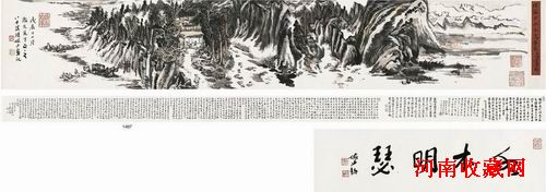 設色紙本 手卷 1988年作 引首:22.5×82cm 畫心:22.5×136.5cm 題跋:23×495cm