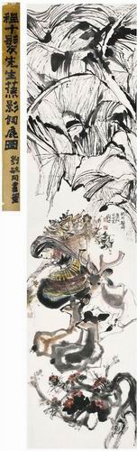 程十髪(1921~2007) 蕉影飼鹿圖 設色紙本 立軸 1978年作 241×61.5cm 說明:上款人題簽。