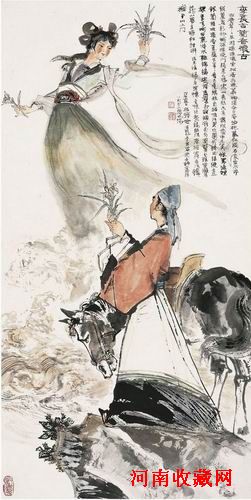 程十髪(1921~2007) 蘭香懷古圖 設色紙本立軸 1978年作 137×69cm
