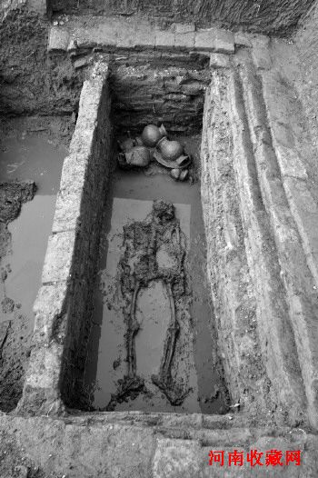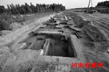 说到这些墓穴的形制,李曰训教授讲述得颇有兴致,他说这些墓穴是砖椁墓,外部都由青砖砌成,内置木椁,呈南北走向,排列整齐有序,每个大约长10米宽5米。而且在每个墓穴的西南角,还有一个特殊的斜坡和方形台。“从墓葬的形制来看,当时的人们对于墓葬是非常讲究的,从挖掘的过程还可以看出,他们十分注重墓地的防盗功能。”