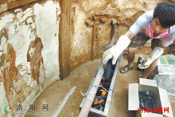 “烧烤炉是用来烘烤壁画的,把墓壁烘干后才能揭壁画。"吕劲松说。