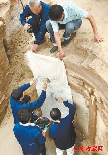 13日晚9时许,新区一考古发掘现场,六七名工作人员一起小心翼翼地将一幅壁画从墓壁上揭取下来,平稳地放在事先准备好的木板上,市文物考古研究院文物保护中心工作人员胡小宝终于松了一口气。