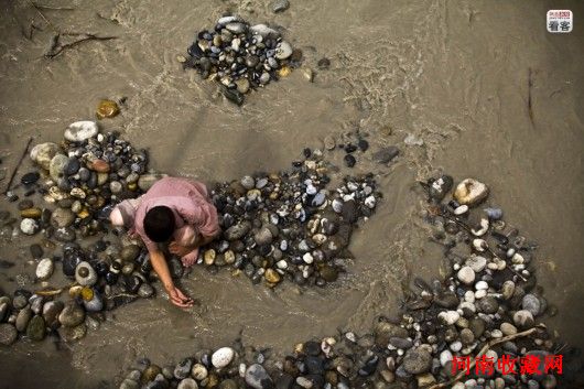 和田玉,分布于塔里木盆地之南的昆仑山。玉龙喀什河,即古代著名的白玉河,盛产白玉、青玉和墨玉,自古以来是和田出玉的主要河流。和田玉有7000年的历史,古老的采玉方式也传承了数千年。玉龙喀什河玉农都是在河岸拣玉,在河里捞玉,用手翻地,最多不过半米深,反反复复地在不足50公里的河道上采了几千年。