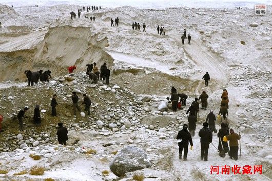 到了2005年、2006年,出现上百万人同时在河床挖玉,3000台大型挖掘机同时工作的场面。2007年6月,政府叫停大型机械采挖,开始对滥采进行治理。库尔班江/摄影