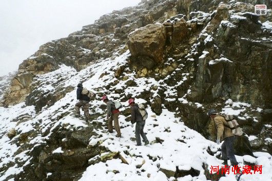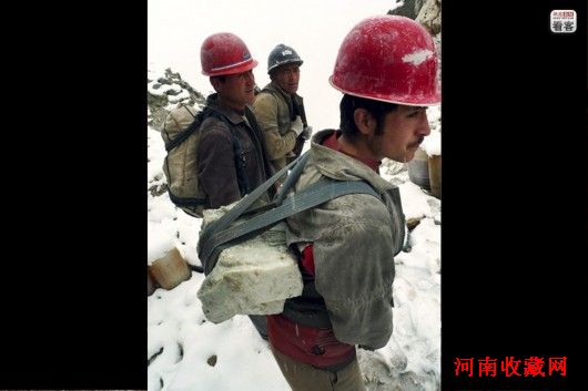 在崎岖陡峭的昆仑山上,人力是运送玉料的唯一工具。如果稍有闪失,造成大块玉料的破碎,玉料便会身价暴跌,采玉人的个人声誉也会一落千丈。库尔班江/摄影