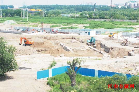 7月17日通州城东门遗址现场,图中可见大型机械施工(曾一智提供)